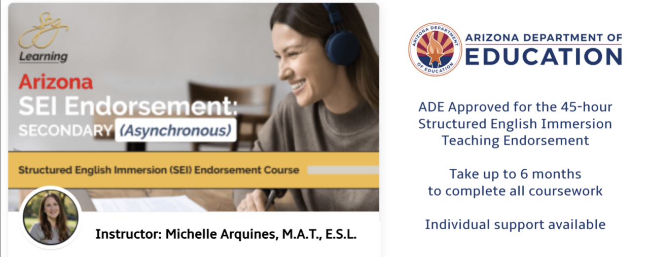 The purpose of this course is to prepare Arizona teachers with the knowledge and skills to effectively provide Integrated Structured English Immersion instruction as designated in any of the four approved SEI models in the state of Arizona.